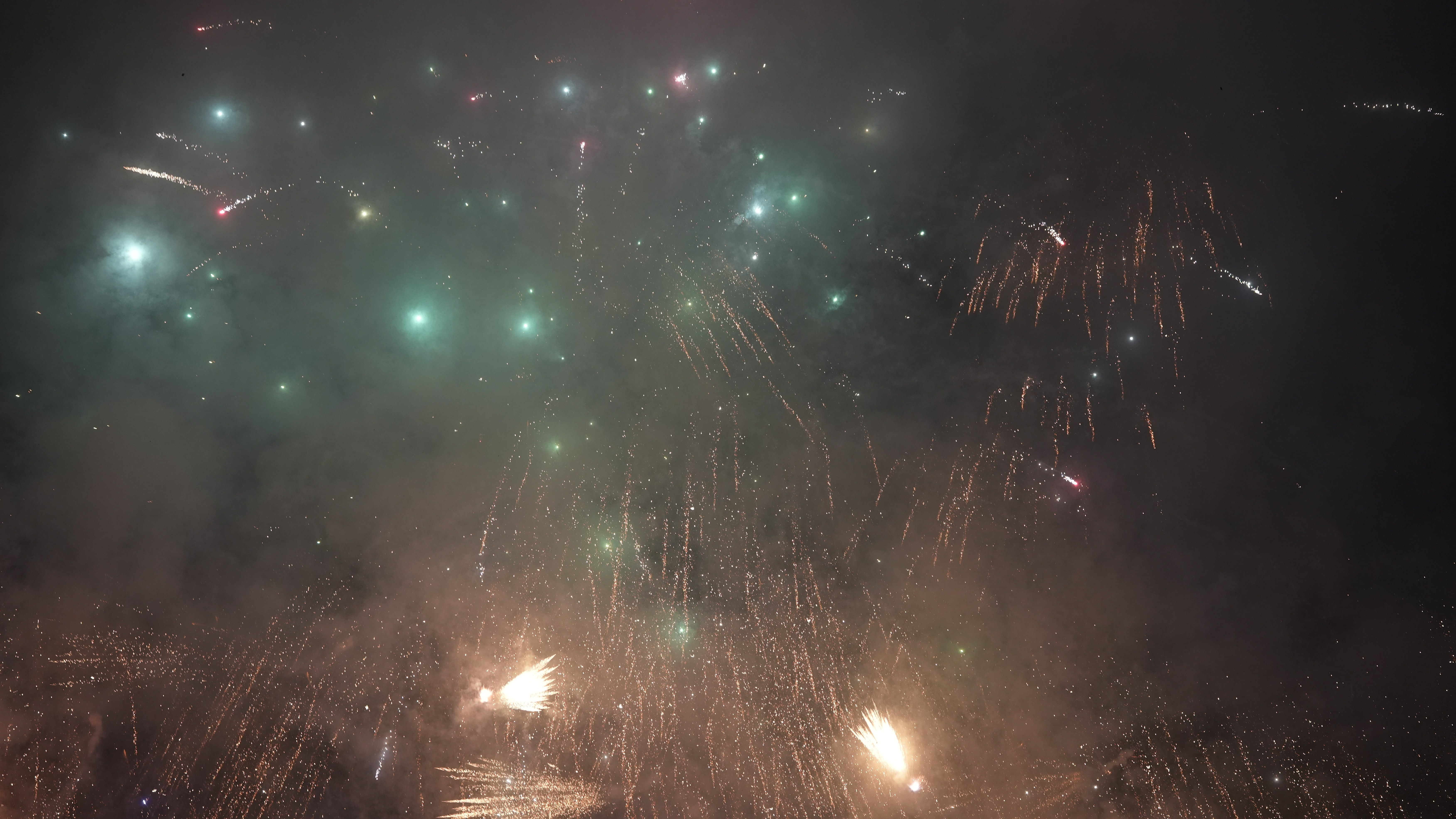 最绝的是 8点的烟花!雨幕里炸开的火星子太梦幻了,戴上面具跳电音集体舞,社恐直接放开了蹦,DJ 和 MC 一控场,全场尖叫根本停不下来!