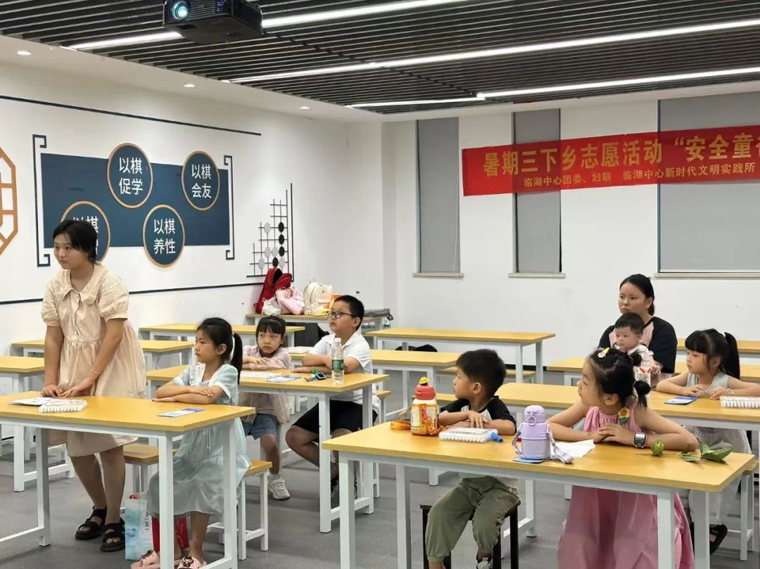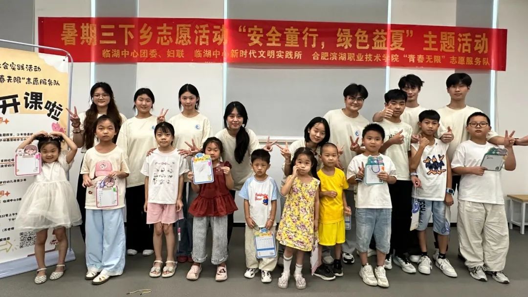 2025年8月13日,合肥滨湖职业技术学院“青春无限”志愿服务团队走进临湖社区新时代文明实践站,开展“安全童行,绿色益夏”三下乡公益课程。通过趣味教学与互动体验,为少年儿童筑牢防溺水安全防线,助力身心健康成长。