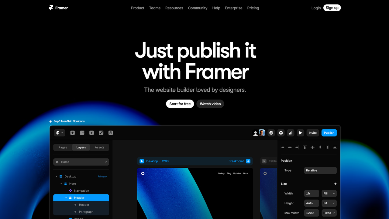 2、Framer AIFramer 是一款结合 AI 功能的全栈设计工具,能够帮助设计师快速生成高保真原型,并且具备实时预览和交互设计功能,适合设计和开发团队协作。
