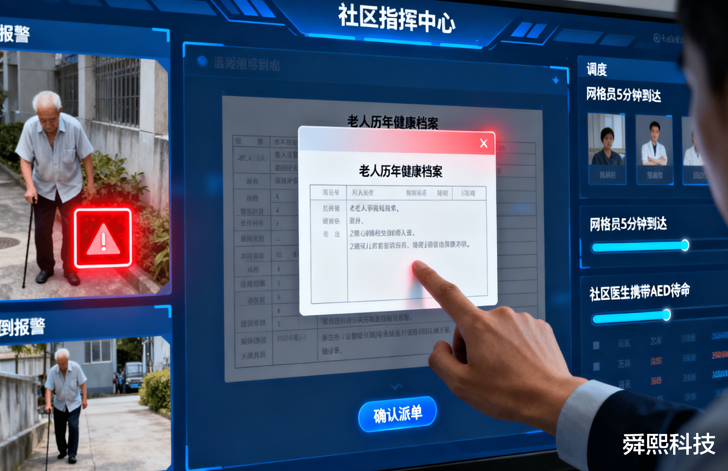 当居家发生紧急情况,AI 智能体更是社区与居家的 “极速纽带”。舜熙科技构建的 “10 秒预警、5 分钟上门、15 分钟联动” 机制,将社区资源变成居家安全的 “后盾”:老人按动 “一键通” 后,AI 系统会同步完成三件事 —— 向社区网格员发送含老人位置、健康档案的求助信息,调度社区附近的志愿者待命,同时联系社区卫生服务站准备急救设备。