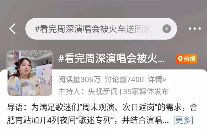 “看完周深演唱会被火车送回家”消息,冲上热搜!