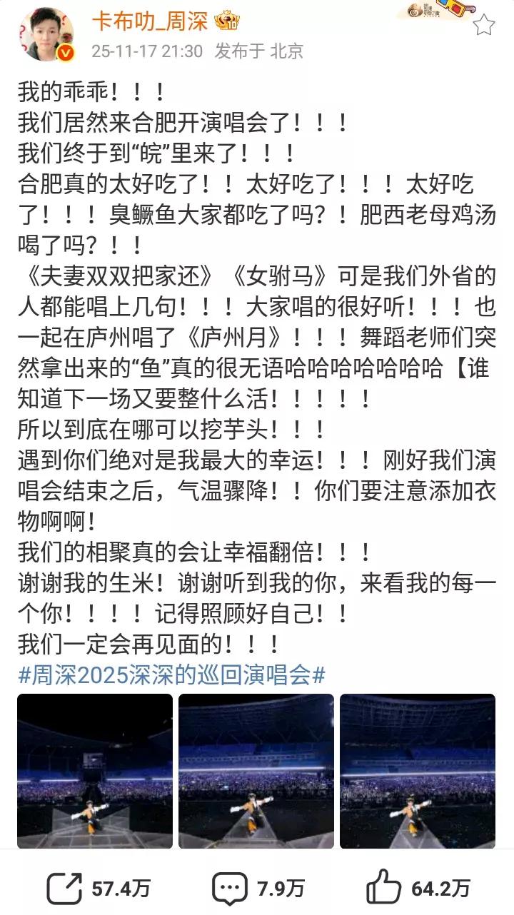 诚然,在2025年这一年中,歌手周深去过很多城市,参加了很多演出,也遇见了不同的歌迷,更是看到了不同地方的风土人情!