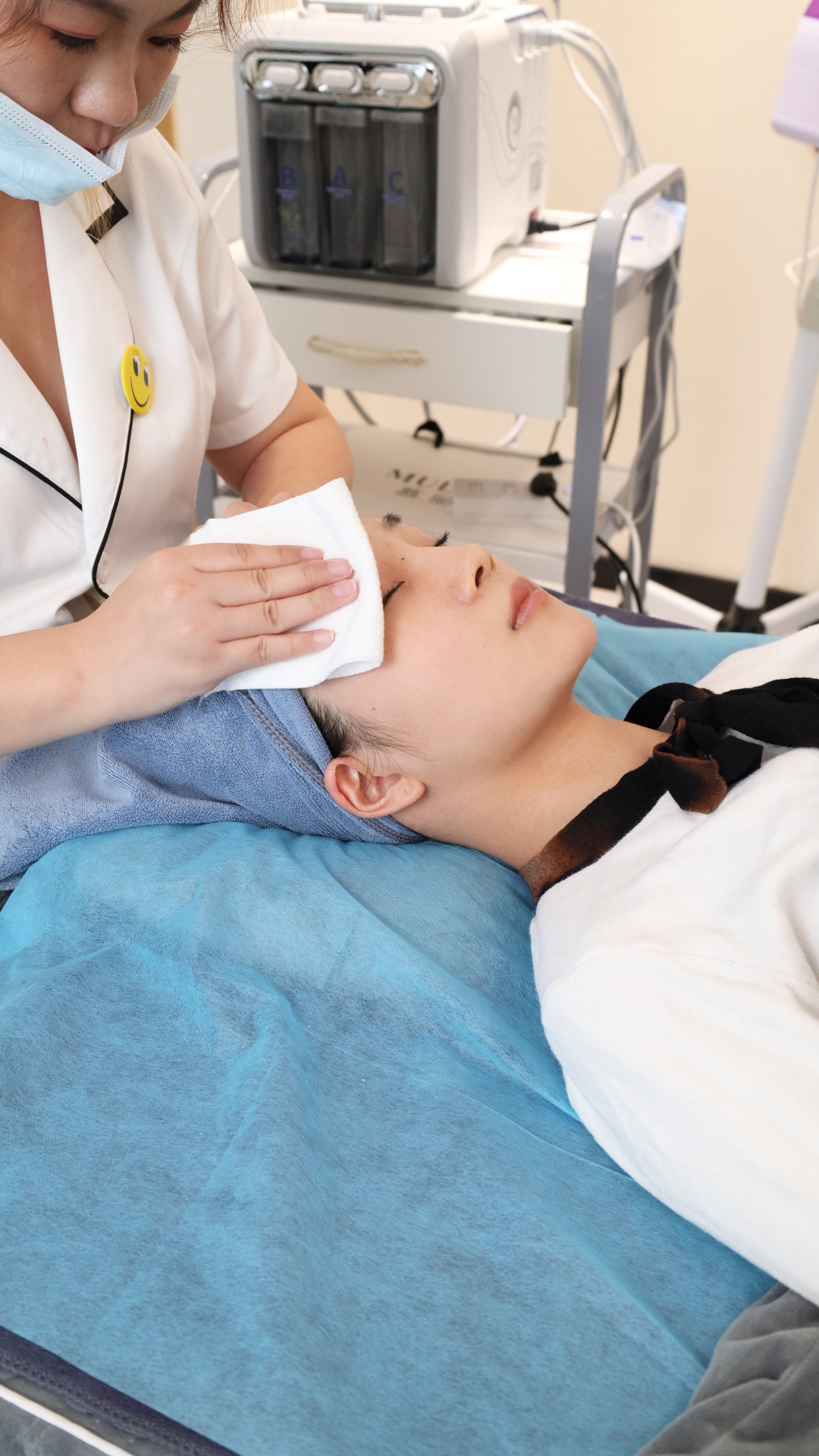 一客一案定制方案:在护理开始前,美容顾问会与顾客进行详尽沟通,了解其生活习性与护肤历史。结合专业皮肤检测仪的客观数据,精准分析斑点类型、皮肤层次与代谢状况,最终形成一份专属的 《量肤定制管理方案》 ,确保后续护理的每一步都有的放矢。
