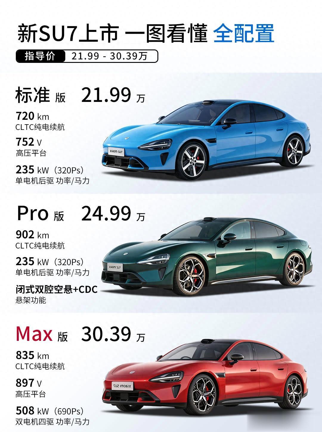 先说结论,我个人的推荐顺序是:SU7 > SU7 Max > SU7 Pro,为啥这样推荐呢?且听我一一道来!