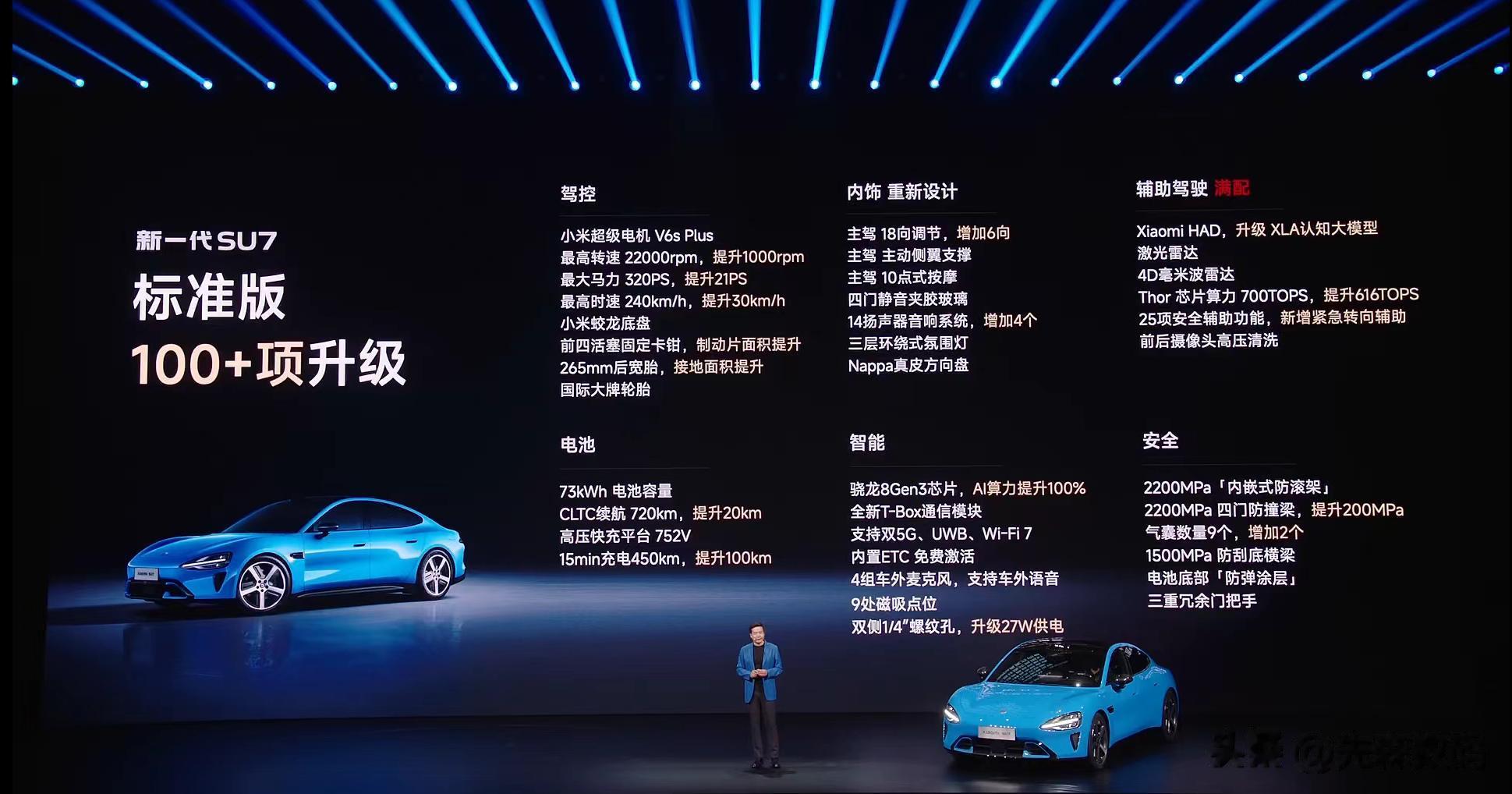 标准版该有的都有,800V高压平台+激光雷达+V6s电机+720公里续航(磷酸铁锂)+25扬声器/副驾零重力(首销),升级非常大且非常够用。
