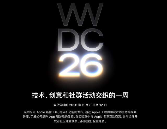 北京时间3月24日,苹果官方正式官宣:2026全球开发者大会(WWDC26)定于6月9日至13日在线举行,同步在Apple Park开启线下特别活动,Swift学生挑战赛获奖者可亲临现场体验。作为苹果每年最重要的软件生态盛会,本届WWDC直接将AI定为核心主题,新一代iOS 27、iPadOS 27等全栈系统升级,以及全新开发者工具将集中亮相,瞬间引爆科技圈热议,既让全球果粉与开发者满怀期待,也让行业再次聚焦苹果的AI追赶之路。