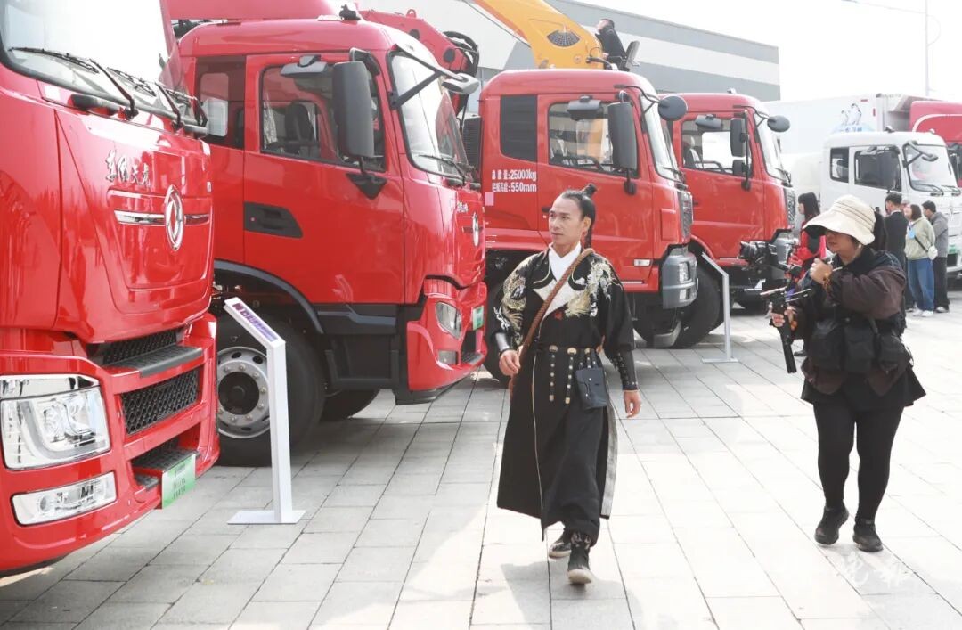 主播们现场拍摄东风商用车旗下东风天龙车型(图源:十堰晚报)