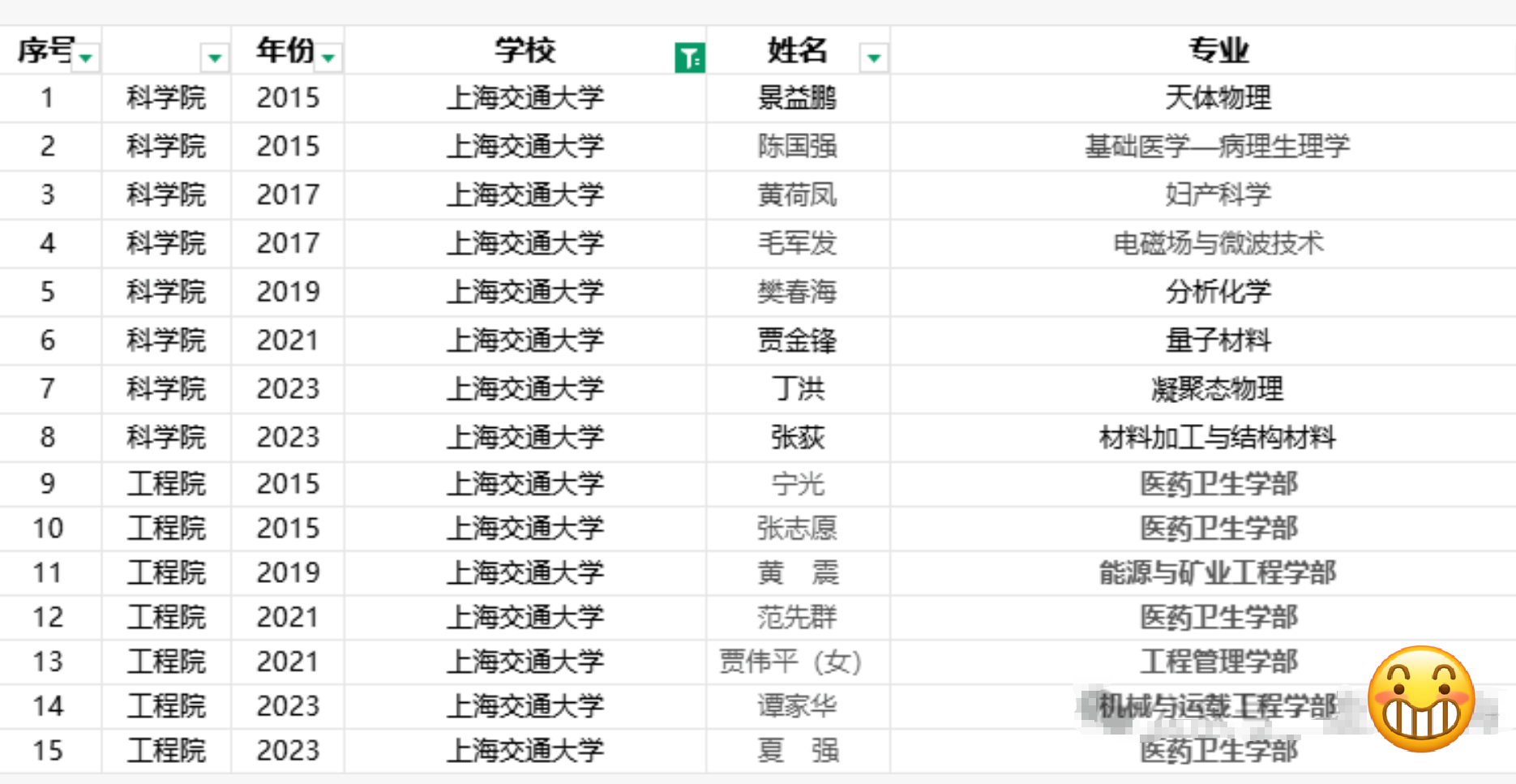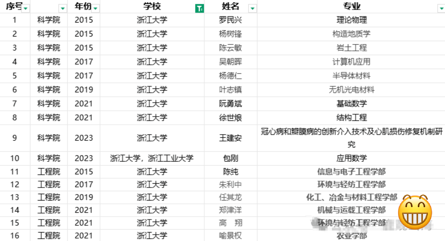 由于2025年的院士增选结果还没出,里面存在不小的变数,我们只看2015年至2023的数据,这些年间,浙江大学以16位新增院士领跑,上海交通大学以15位紧随其后,复旦大学则以7位暂居第三。