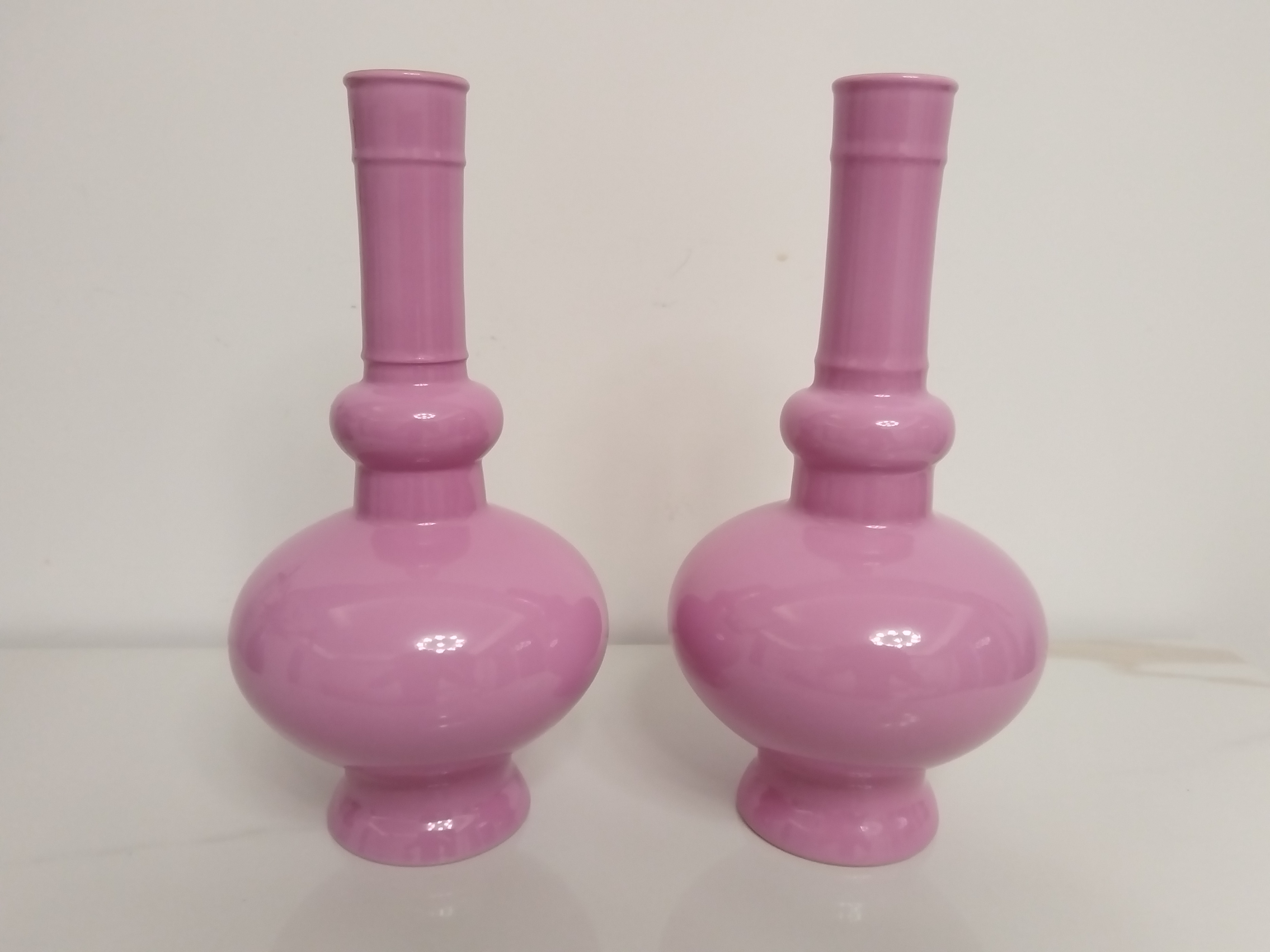 竹颈的挺拔线条与粉釉的柔和色调形成视觉反差,成对摆放时对称感十足,宛如清宫雅室的 “瓷质竹景”。无论置于现代空间作装饰,还是作为收藏研究的对象,它都能在釉色与造型的碰撞中,传递出跨越百年的古典雅致,让观者在瓷瓶的竹风粉韵里,读懂清代官窑的美学密码。