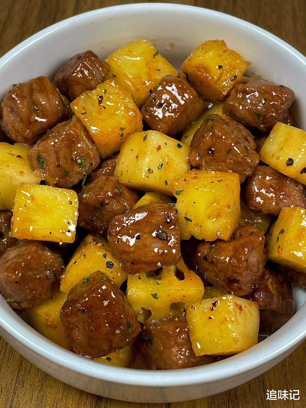 菠萝黑椒牛肉粒牛肉外焦里嫩,黑胡椒的辛香与牛肉的肉香完美融合。菠萝酸甜多汁,中和了肉质的浓郁,每一口都带着果香的清爽,超级开胃。