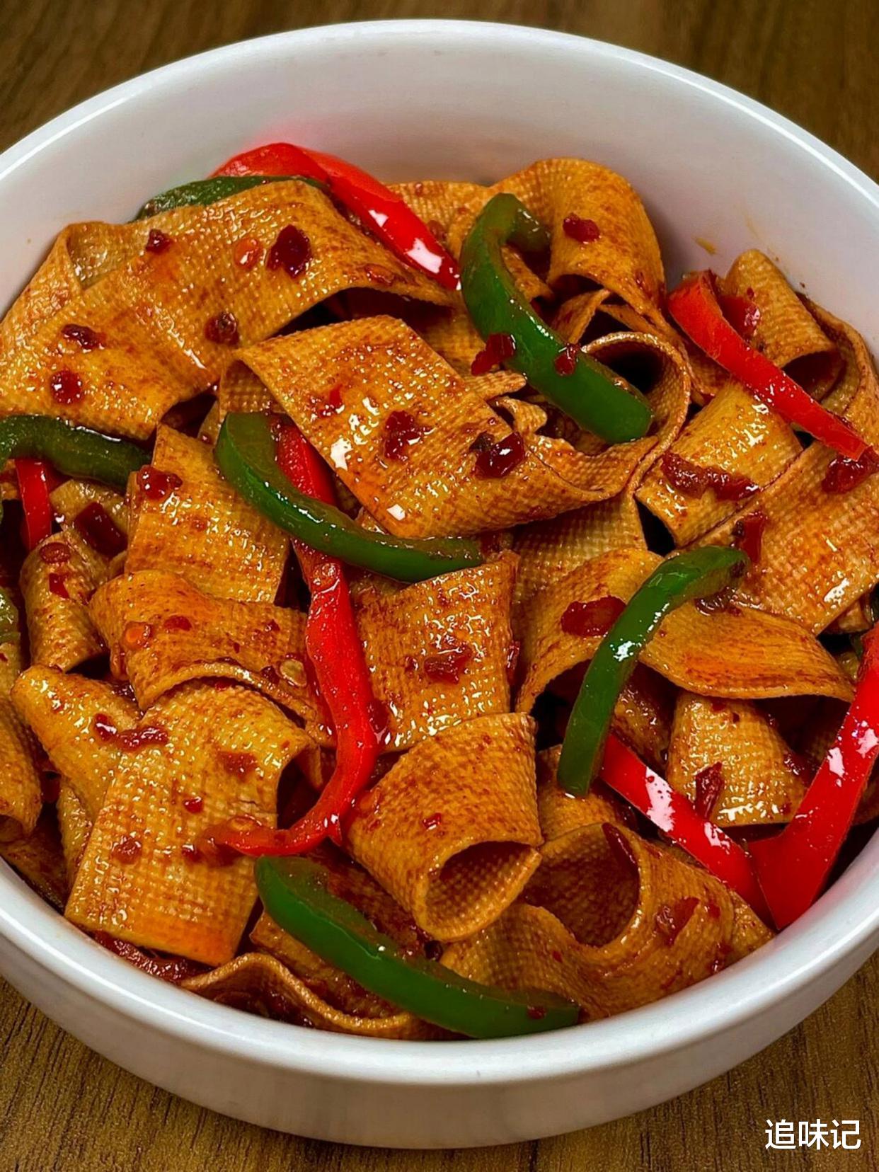 青椒炒豆皮豆皮吸满了酱汁的咸香,口感柔韧有嚼劲。青椒的清新辣味点缀其中,蒜香和辣椒面的香气扑鼻而来,简单却让人回味无穷。