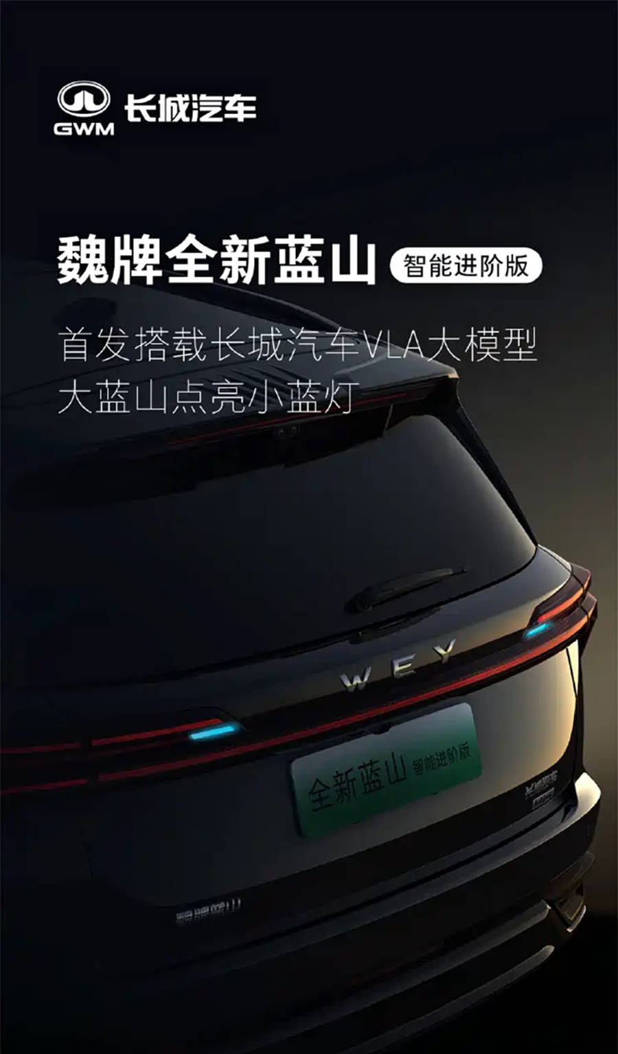 日前,魏牌官方宣布,旗下中大型SUV——魏牌蓝山智能进阶版将于近期上市。根据官方海报介绍,该车将首发搭载长城汽车VLA大模型,并配备小蓝灯等配置。