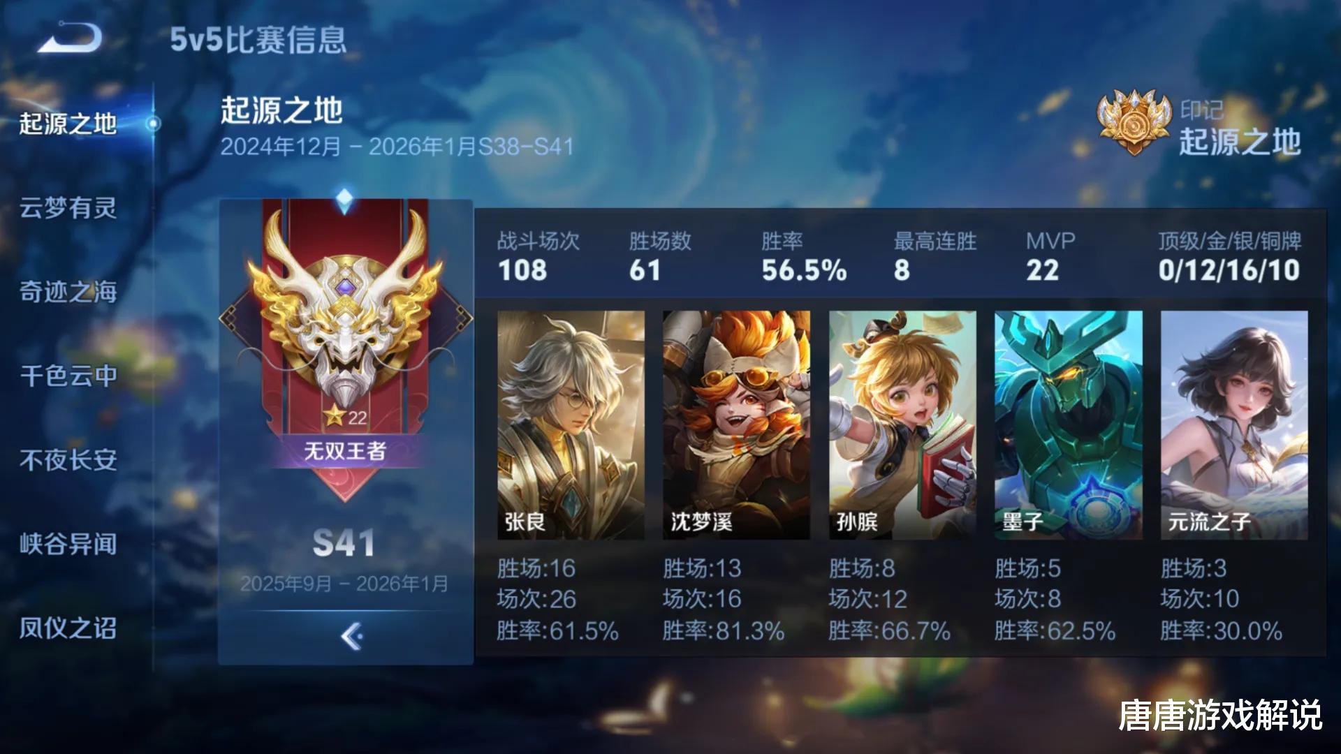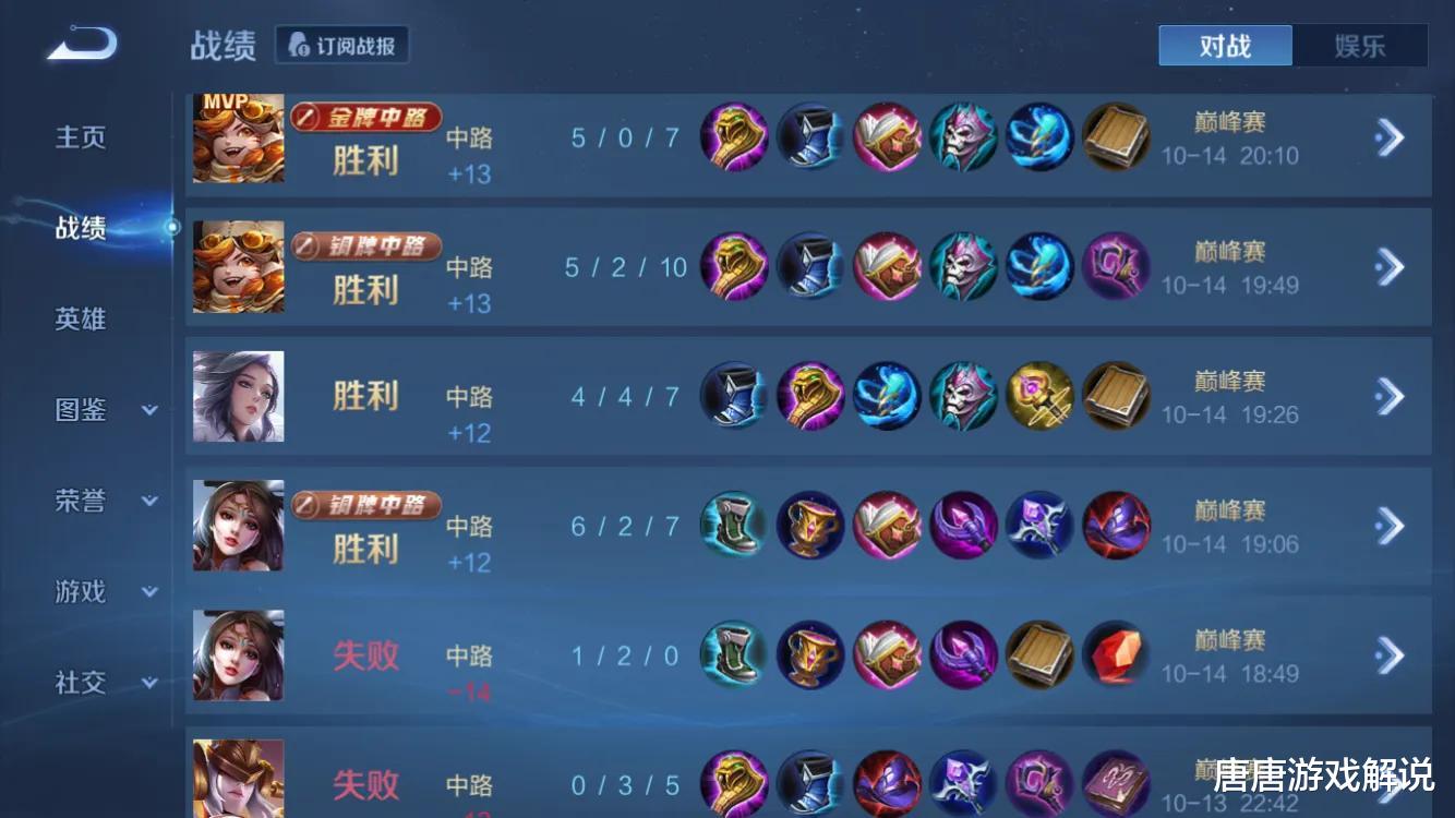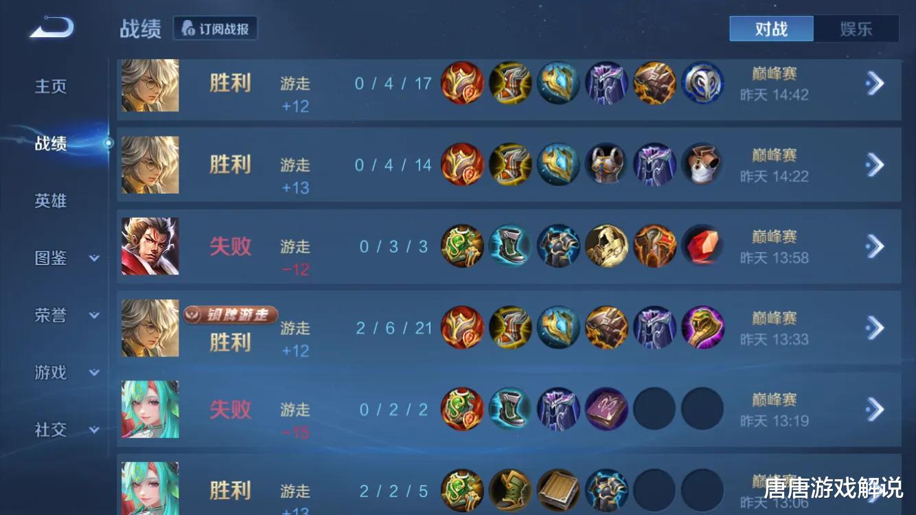 英雄实战表现方面,单排使用沈梦溪以81.3%的胜率成功晋升无双王者,星耀晋升王者以及非凡、无双王者,关键对局都是用沈梦溪突破的。