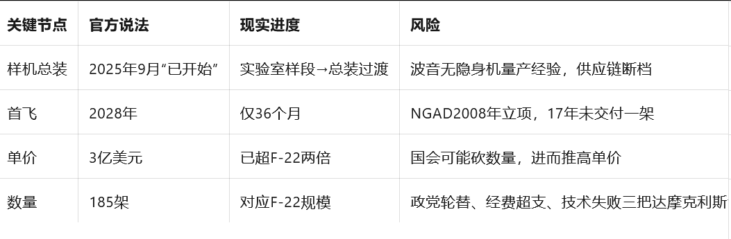 即使波音24小时三班倒,2028年也只能飞出一架“能看能用”的验证机,离实战列装还有至少5-7年。