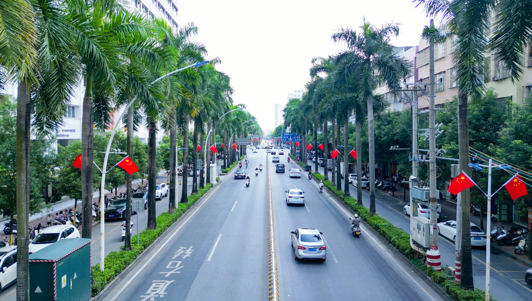 2025年10月1日中华人民共和国成立76周年盛世华诞,举国欢庆罗定城区红旗飘扬、张灯结彩处处洋溢着喜庆祥和的节日氛围漫步罗定城区大街小巷,浓厚的节日气息扑面而来。兴华路、龙园路等主干道上,一面面崭新的五星红旗整齐地悬挂,在秋日阳光下迎风招展、熠熠生辉,尽显庄重与喜庆。在城区各大商超,大红灯笼与飘扬的国旗交织出节日的盛景,精心布置的国庆主题装饰吸引众多市民驻足留影。“我们的国家日益强大,作为市民感到无比自豪,祝愿祖国繁荣昌盛,人民幸福安康。”市民陈先生说。