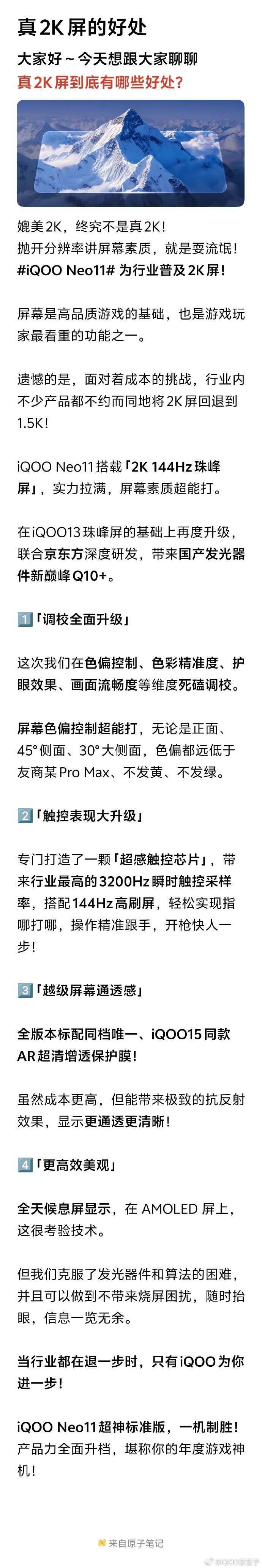 这次#iQOO Neo11# 直接搭载「2K 144Hz珠峰屏」,实力拉满!