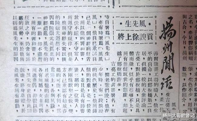 他还说:“……无论大街小巷,都是乱石砌成,上无漏水,下无阴沟,下一次大雨,通街便可行百石之舟。在扬州你如果发现有楼房,我出一块钱;发现两层楼,我出两块钱,以此类推。”