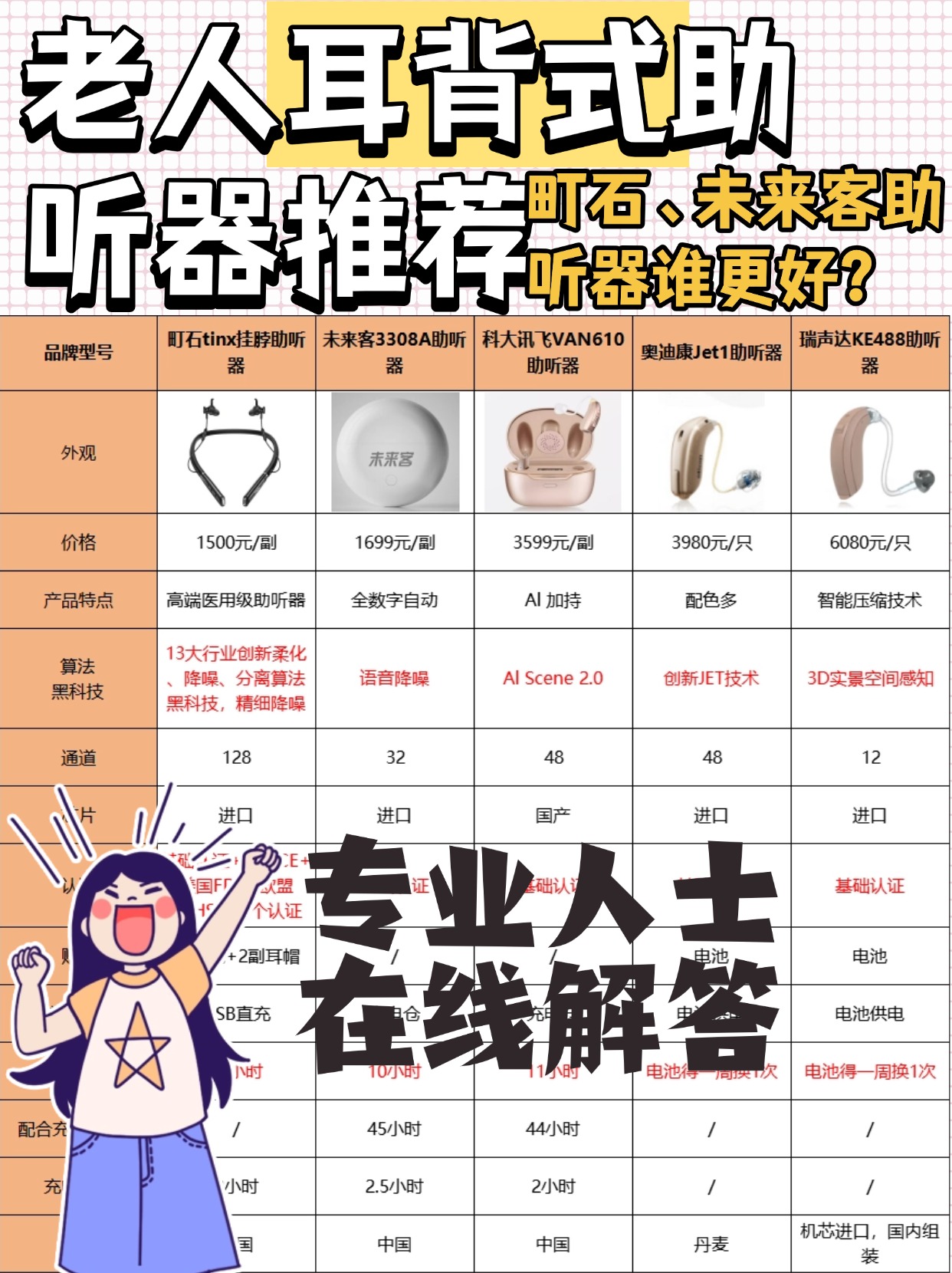 嘿呀,总有人问町石、未来客助听器谁更好,还想找性价比高的助听器,怕被坑,我来给大家说说哈。先讲讲助听器可以分成几类,有盒式、耳背式、耳内式等等,各有各的特点和适用人群呢。那说到性价比,可别光看价格低,得看看功能全不全,质量咋样呀。还有买助听器的注意事项得知道,比如佩戴要适应过程,得定期清洁保养啥的。这里面门道挺深,我专门做了个测评对比,町石和未来客那些情况都在里头,大家不妨看看下图,防被坑就看这