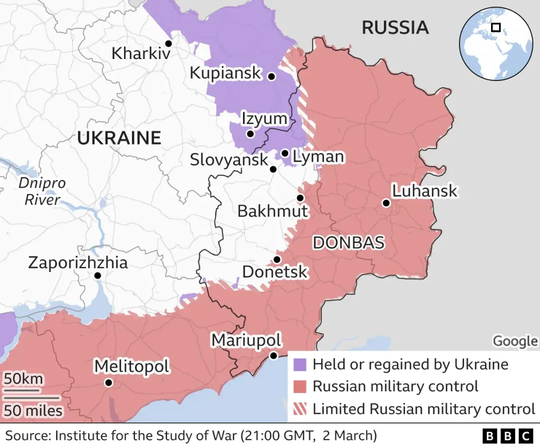 库皮扬斯克,处于俄军控制之下。这不是“正在争夺”,也不是“部分占领”,而是已经控制。