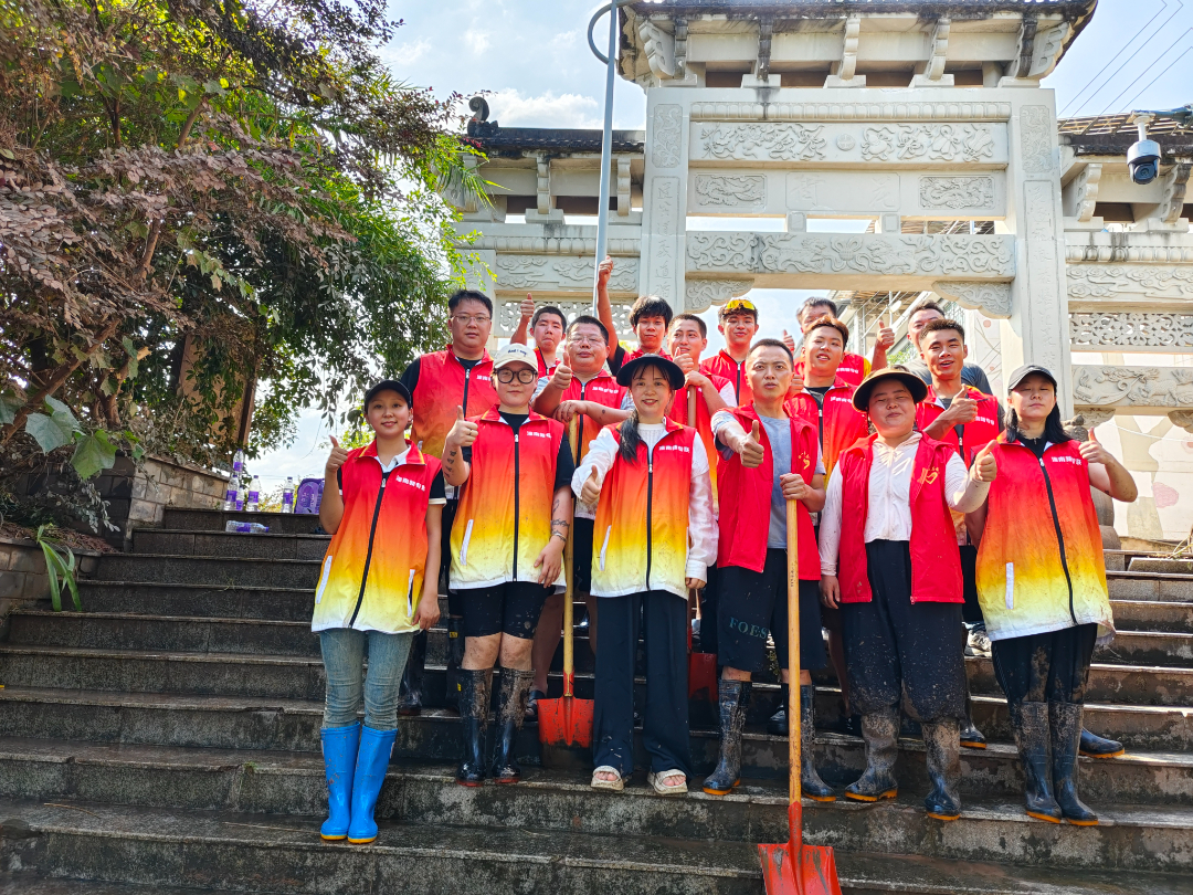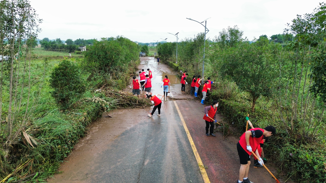 2024年7月15日早上,区新专联志愿者和同诚志愿者协会志愿者来到崇龛镇白沙村花街、青杠村、污水处理厂清理垃圾淤泥,带头挥舞铁锹、扫帚,挥汗如雨,清理路面因洪水退去留下的残枝败叶、淤泥。用双手为灾区人民重建家园贡献力量。