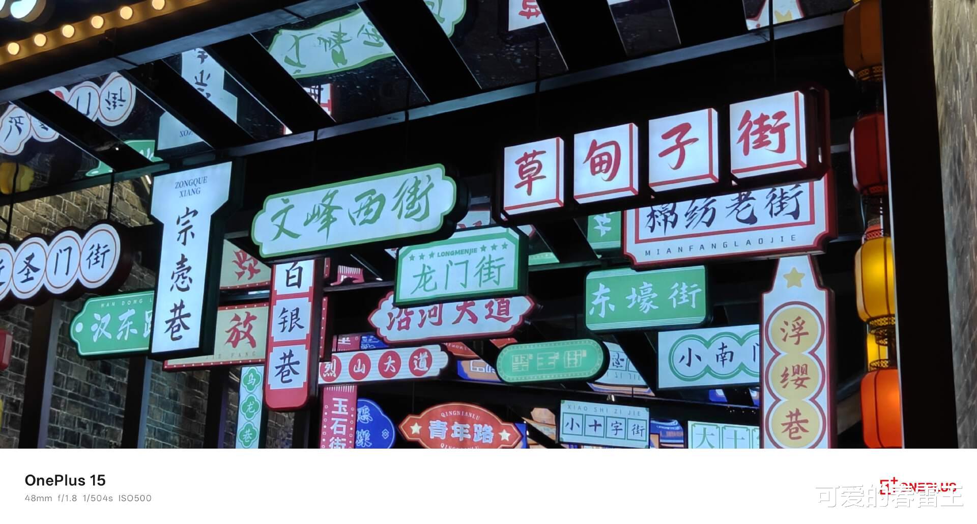 一加 15 这次后置采用了3个颗摄像头,分别是主摄索尼IMX906主摄+OV50D超广角+三星S5KJN5潜望长焦,尤其是这颗潜望长焦,支持3.5倍光学变焦,还采用了85mm黄金人像焦段,这次一加的影像实际表现也很不错。