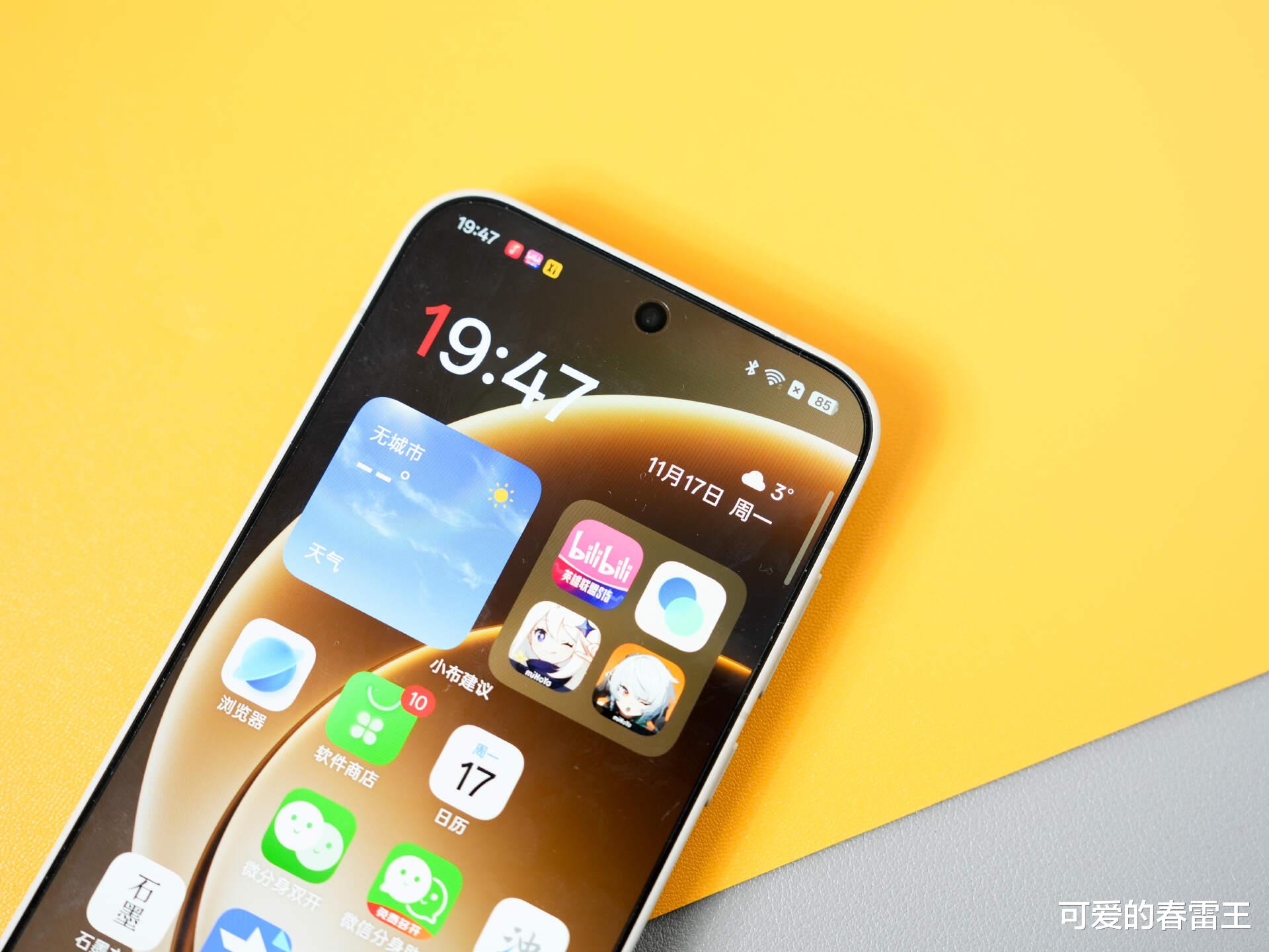 说真的,这次上手后很喜欢一加15这款手机的直屏和沙丘配色,正面直屏融入精密润角、黄金 R 角与 1.15mm 超窄四等边等设计,直观的感受就是正面看起来边框对齐,观感更对称。背面采用了「纳米 AG 玻璃」,手感摸上去有轻微阻尼,但握持有不会很光滑,并且不沾染指纹,这点好评。