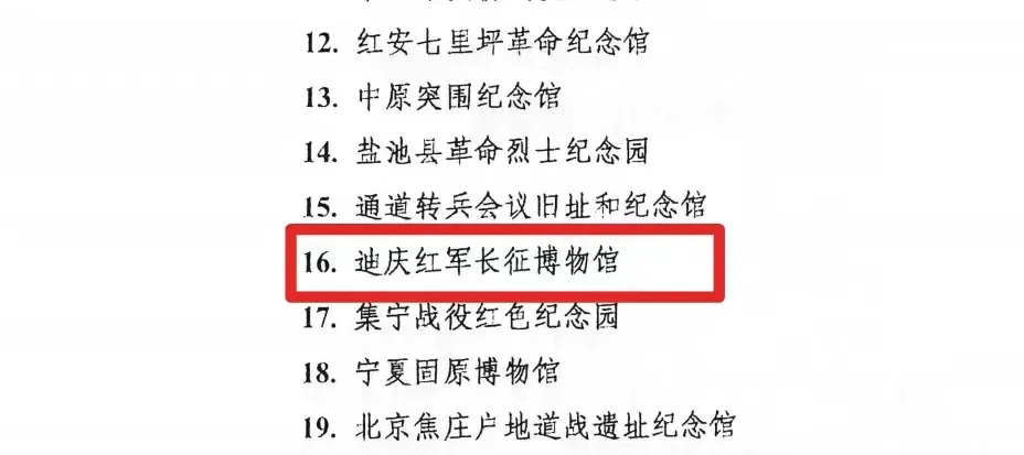近日,中宣部文化改革发展局印发《关于公布2025年度红色基因库资助项目的通知》,确定25家单位为红色基因库资助项目单位,迪庆红军长征博物馆入选其中,是云南省唯一一家入选单位。