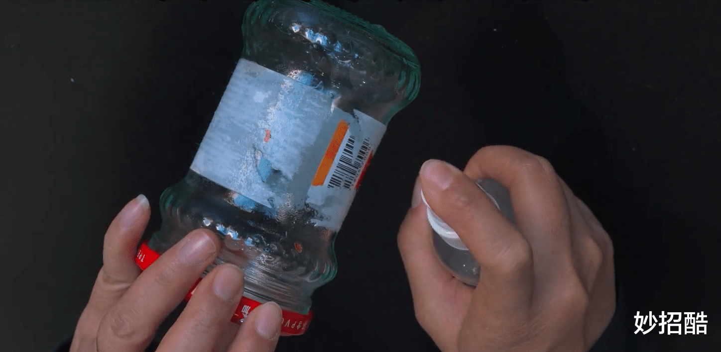 然后用清水冲一下,就可以彻底去除干净。因为酒精能快速溶解胶的黏性,让胶印从瓶身表面分离。