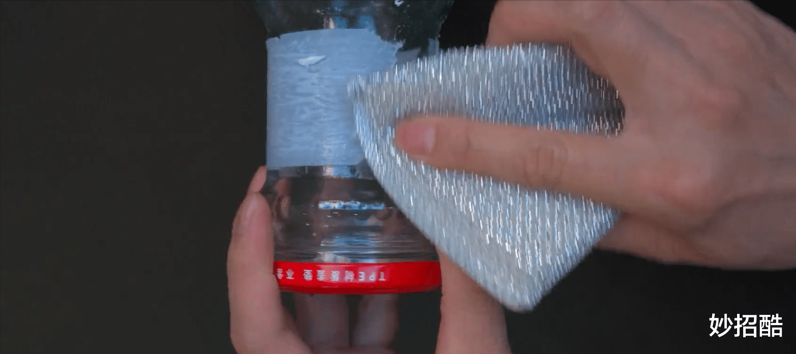 等时间到了后,准备一块百洁布,顺着瓶身轻轻擦拭胶印。你会发现原本难以去除的胶印,一擦就掉,完全不费劲。