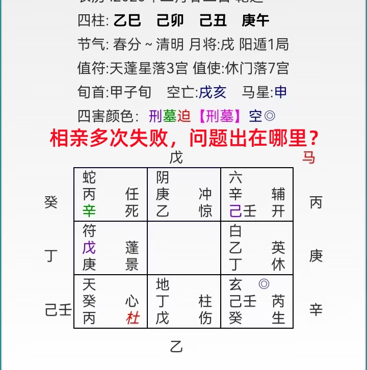 巽4宫(死门+辛入墓):过往感情经历或家庭因素(如父母干涉)形成潜在阻碍。