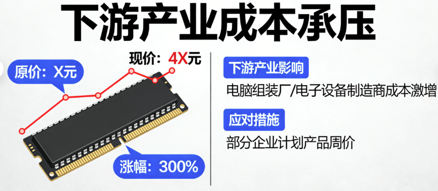 受此影响,下游产业普遍面临成本承压困境。电脑、手机等消费电子企业纷纷调整产品售价,部分品牌笔记本电脑、智能手机价格较去年同期上涨10%-15%,消费者购买成本显著增加。此外,汽车行业也受到波及,随着智能汽车对存储容量的需求不断提升,内存条涨价导致车企生产成本上升,部分车型的售价也出现小幅上调。