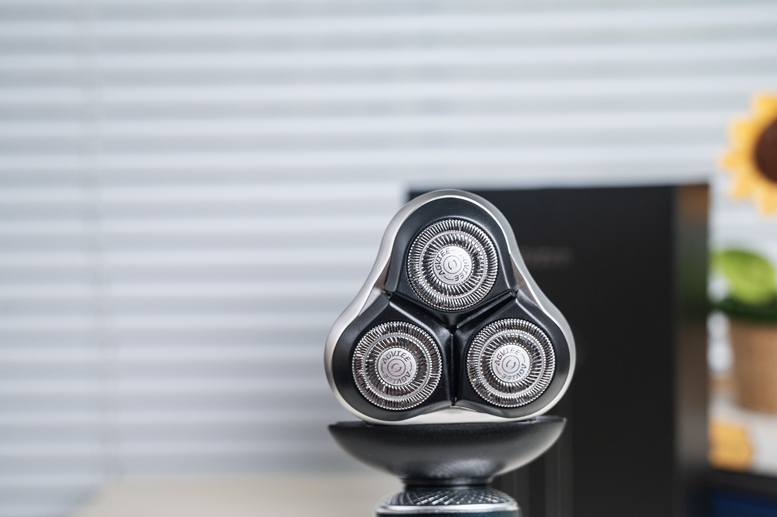 lDDD三重浮动结构:第一重,三刀头360°独立旋转;第二重,刀网独立上下浮动;第三重,模组弹性缓冲。三重联动,确保刀头能像“智能触手”般,紧密贴合面部每一处起伏。