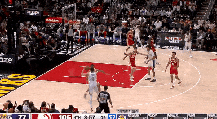 NBA常规赛,湖人对阵老鹰的比赛正在进行中。