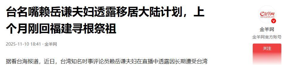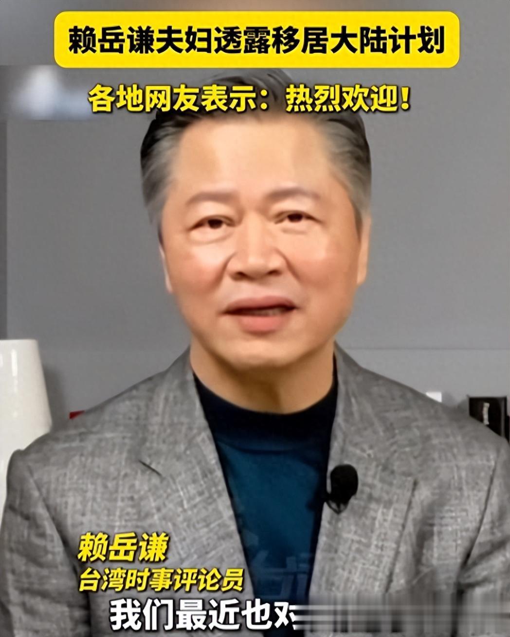 03 决心投身大陆11月10日,赖岳谦公开表示,他们家现在已经做好了移民大陆的准备。