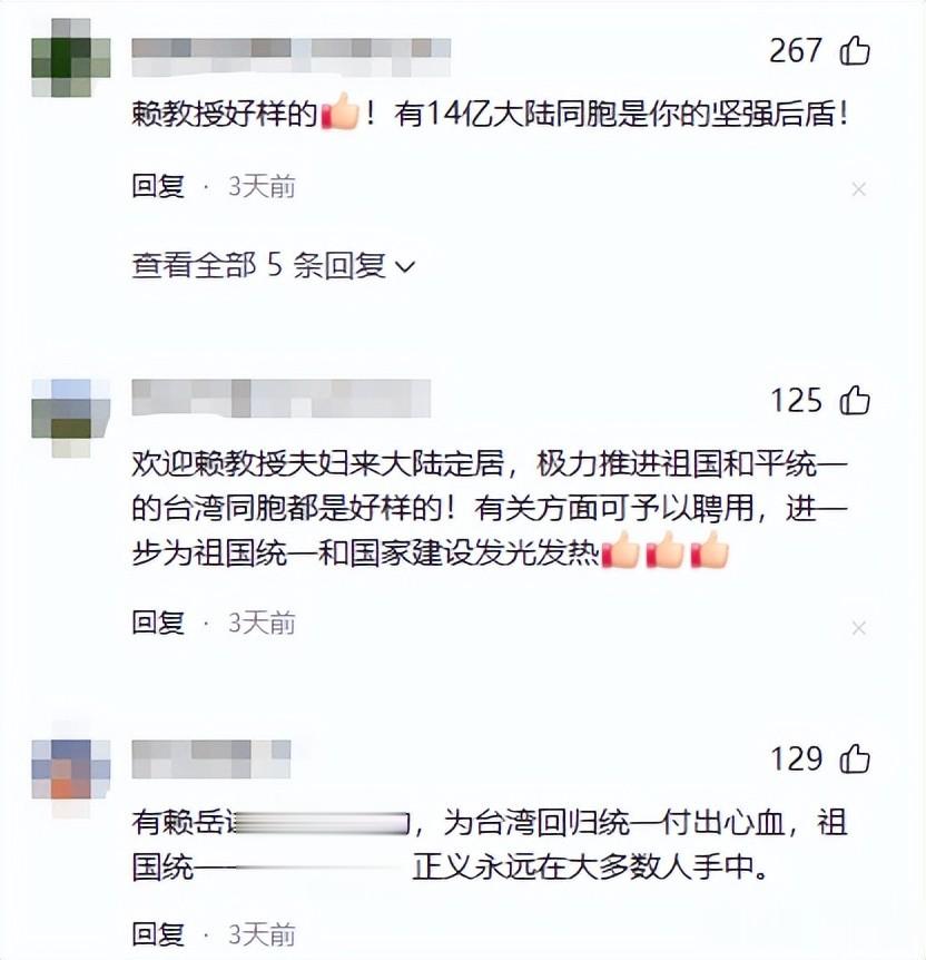 甚至赖岳谦还在采访中直言“两岸本来就是同根同源,台湾人就是中国人。这是个无可置疑的地方。”