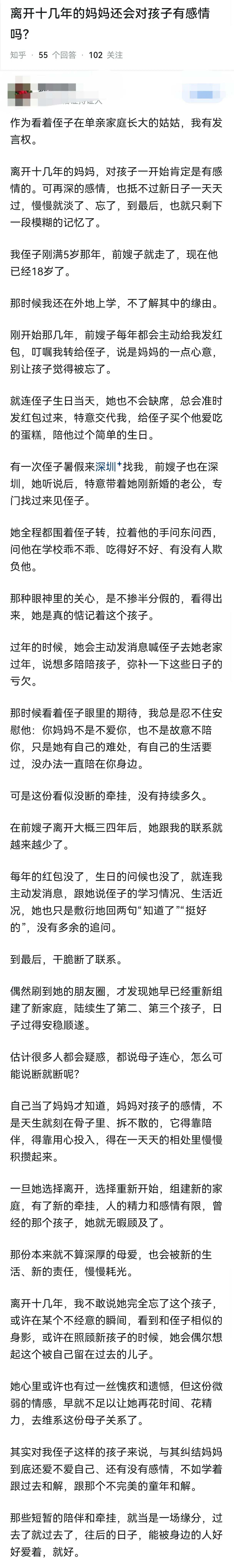 离开十几年的妈妈还会对孩子有感情吗?网友的回答很真实,扎心了