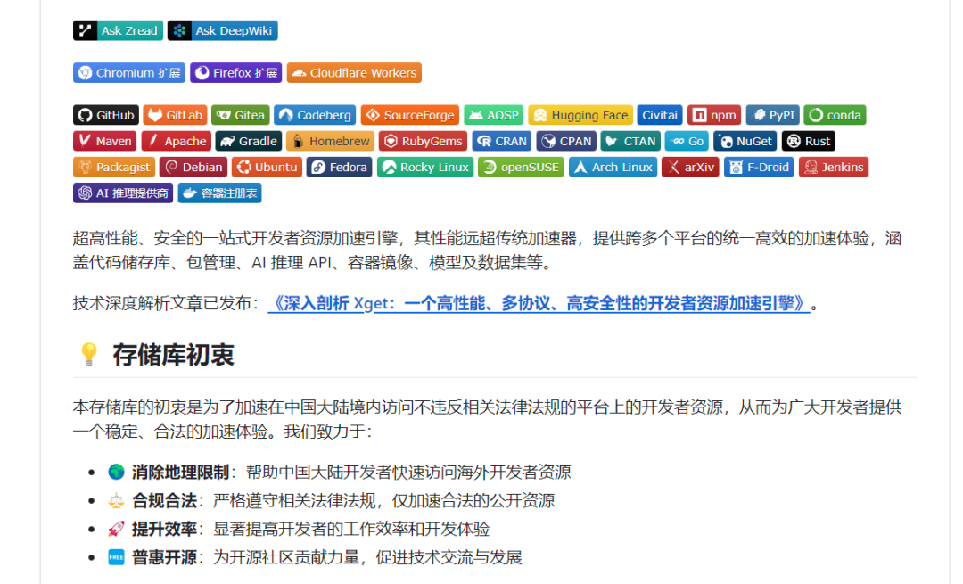 首先讲明一点, xget 并不是一个网络加速器,无法实现加速访问网站,其只是一个资源下载加速器。如果想浏览 GitHub 和 DockerHub 这类网站,还是推荐用 Watt ToolKiit。但如果是下载某个确定的资源,则可用到该工具。