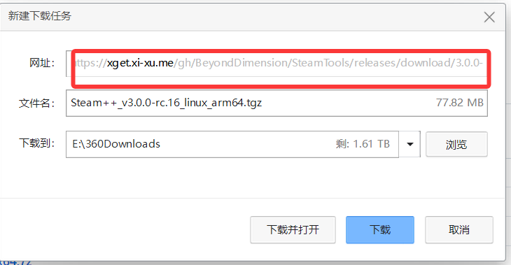 这次还是以 Watt Toolkit 下载为例,点击后会被插件拦截解析转换为xget 下载地址: