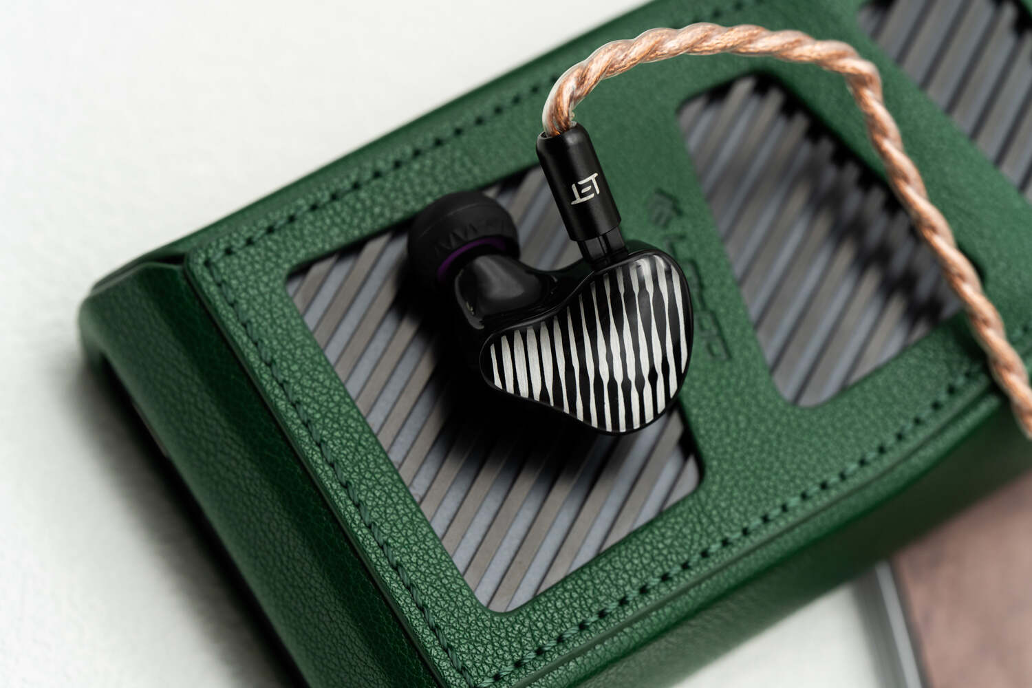 虽然ELETECH和CANPUR一直以来都有合作,后者的高端耳塞经常用ELE的线材作为配线,但两个品牌直接联名推出一款耳机还是头一次,这就是联名款旗舰入耳式耳机蒙娜丽莎。这塞子在今年成都展首次展出后就以均衡中正而又华丽的高素质声音深深打动了我。当时我觉得它唯一缺点是外观过于低调而且有些摸不着头脑,甚至第一印象都没想通这外观和“蒙娜丽莎”有啥关系,黑白条纹倒是让我想到“斑马”……而当把耳塞腔体拿在手上仔细把玩,才会发现缓慢变换角度时,面板上会浮现世界名画“蒙娜丽莎”的半身像轮廓,面板上的黑色条纹通过粗细变化和曲线的巧妙设计,刚好构成了蒙娜丽莎那家喻户晓的形象线条。