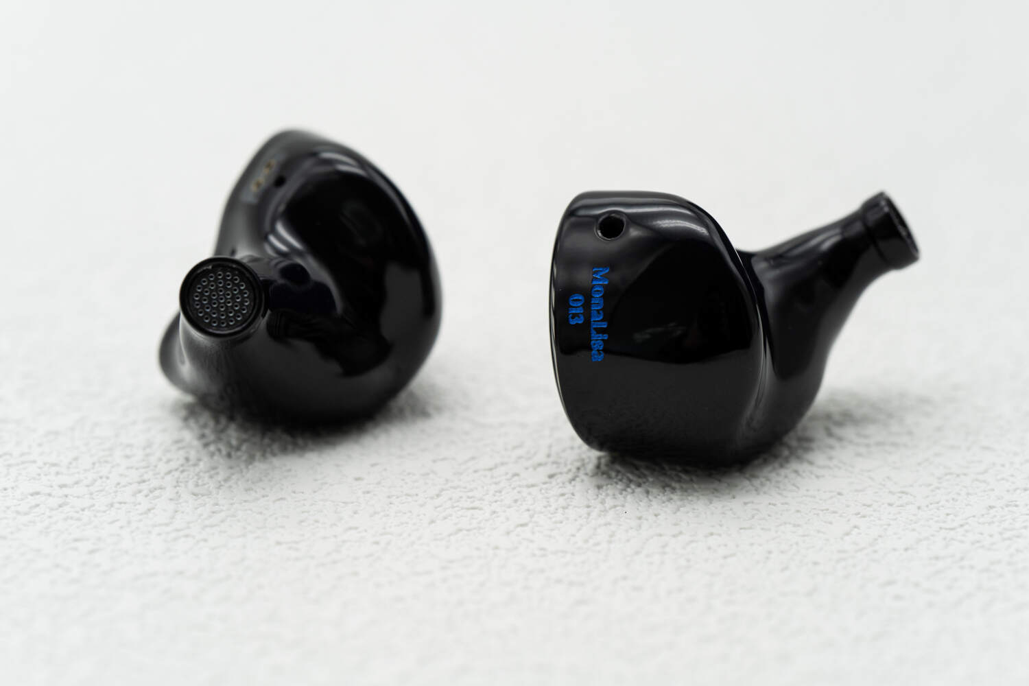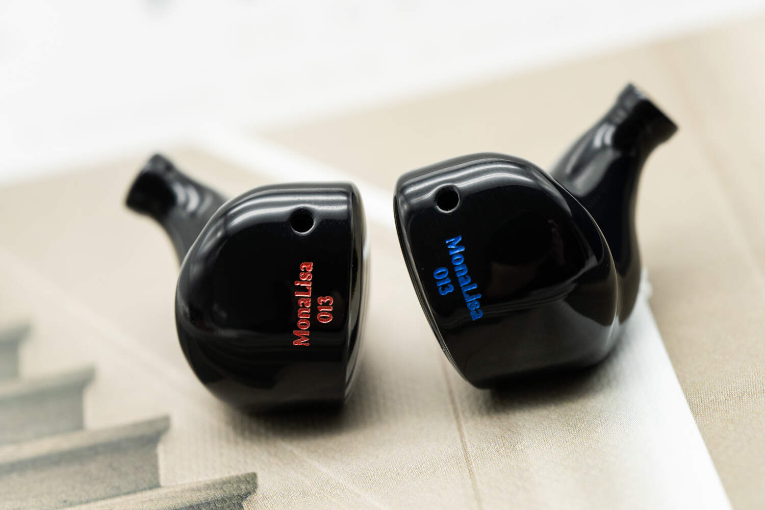 讲道理,当我得知这两个品牌做了一条联名耳塞的时候,我内心对它的外观是非常期待的,毕竟ELE做的线材五金件都那么考究,结果看到蒙娜丽莎实物……就这?尤其是在尚未get到“蒙娜丽莎在哪”这个点在哪之前,乍一看这就是个很普通的公模定制塞子。毕竟,看上去既没有特立独行的设计,也没有木头或金属的夺目色泽与质感,甚至造型上也没什么突出的地方——这对于只能在展会上试听的环境而言,实在是不太有利。