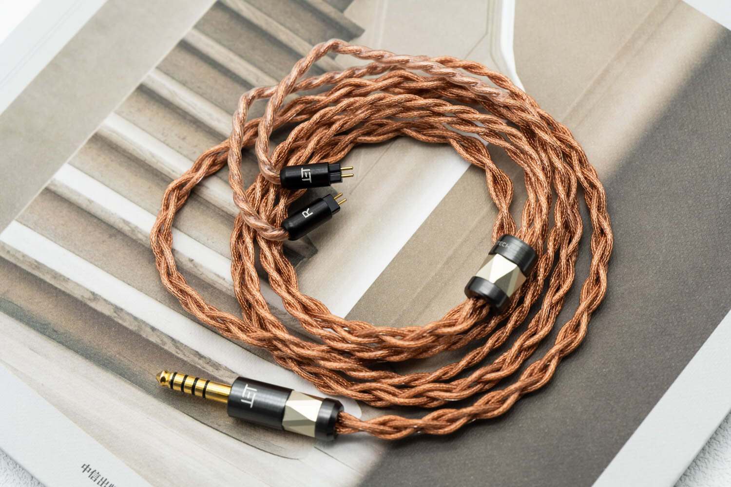 ELETECH主导的联名塞子必然会拿出自己看家的好线。这次的标配线材名为“卢浮宫”,与“蒙娜丽莎”之名相呼应,包装内也附了一块内置了卢浮宫实景造型的水晶工艺品来强化产品的视觉意象。“卢浮宫”线是一条四股结构的22AWG的铜材混合线,采用了三种定制铜加上Kevlar专利铜屏蔽层而成,整体柔软度不错,也不算很粗,收纳半径较小。如果不是高端折腾党,基本上蒙娜丽莎用这个线直接就毕业了,完全没必要换线。五金件以浅灰色和淡金黄色为主,大体上符合《蒙娜丽莎》画作的色调。我在评测之余把这根线换给其他塞子尝试了一下,发现这是一条声音微暖、声底厚实的高素质现在,能够在提供良好氛围感的前提下提升声音的各频段素质与两端延展,本身也是一条百搭的好线,如果单卖我觉得也有万元档的线材实力。而蒙娜丽莎自身的声音特性也有很大一部分离不开这条线的作用。