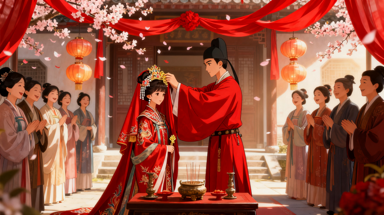 二十岁那年,陆游迎娶唐婉。婚礼当天,满城春色,桃花纷飞。他亲手为她戴上一支金钗,轻声道:“此生唯愿与卿白首。”