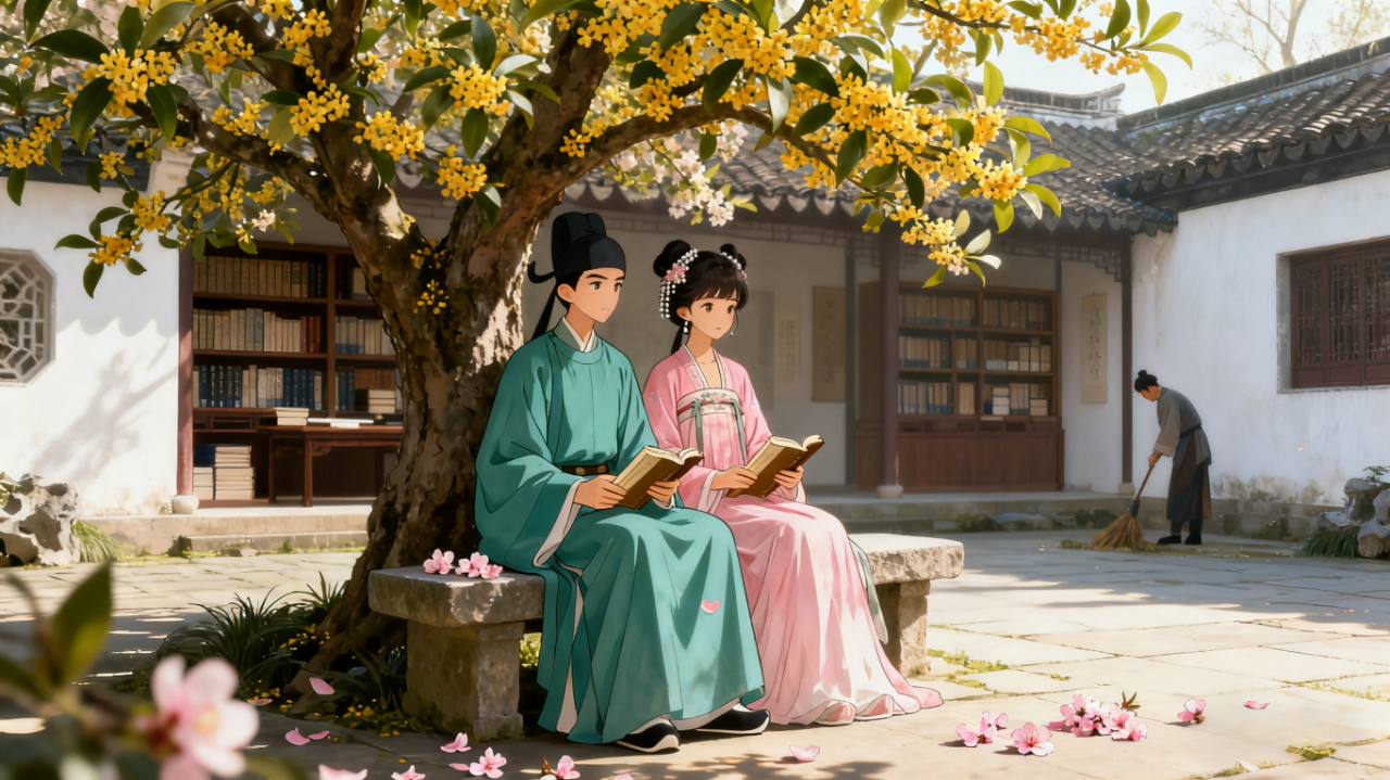 两人从小一起读书、赏花、吟诗作对。一个温润如玉,一个清丽脱俗。邻里都说:“这一对璧人,天生一对。”