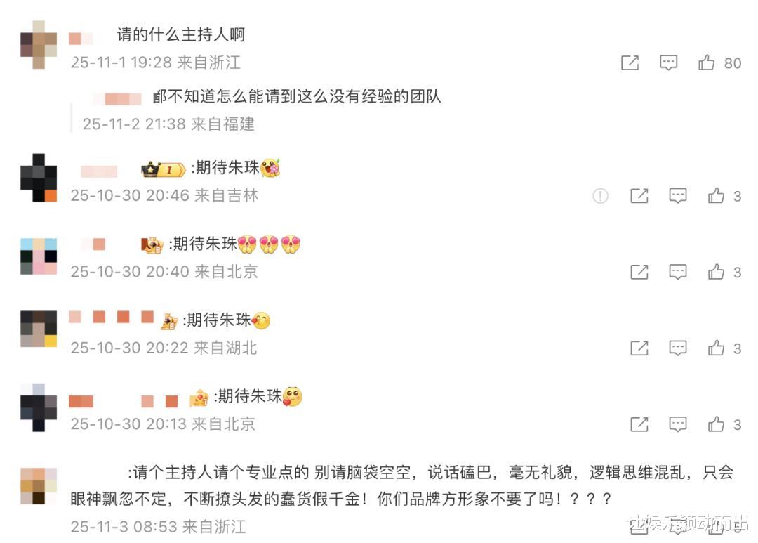 在品牌的社媒评论区,依然有大量用户针对此事表达不满,如“团队做事不严谨,衣服能好到哪里去”、“请个脑袋空空把自己当嘉宾的人主持,这是品牌理念?”、“老粉要转黑了”等。