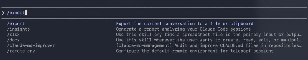 九. /Export这个命令很简单,打/export,当前的整段对话就会被导出成一个Markdown文件。