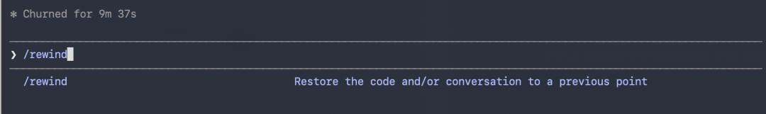 比如我现在我开发了一个功能,我觉得不好,想撤销,我就可以先打/rewind,然后把这个会话里面的历史拽出来。
