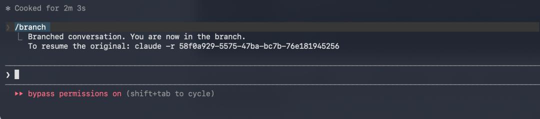 比如Claude刚帮你梳理完一个方案的思路,你想沿着这个思路试两种不同的实现方式,/branch一下,两个会话各走一边,最后挑效果好的那个。