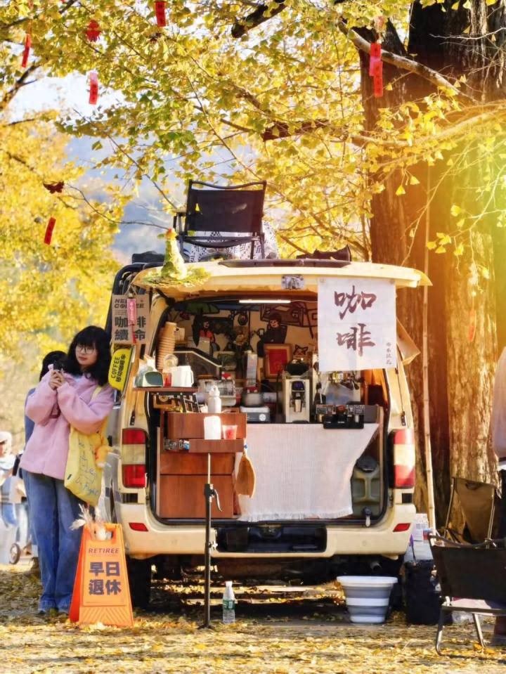 恰逢旅游高峰,村子里的停车位有些紧张,把车子停在村道边后,我们下车步行,沉浸在这片银杏的海洋里。
