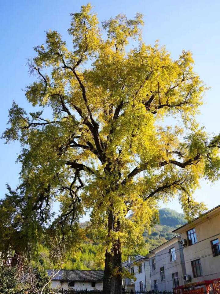 年龄最大的这棵被称为“银杏王”,已经有1200多年历史,从南宋时就稳稳立在这里,当地人说它是万市的“镇镇之宝”。