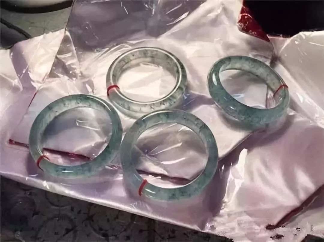 果然!手镯起货效果非常好,高冰加上偏淡蓝的飘花,脱俗清新,水灵水气,下图四只在一块更是,碾压全场。